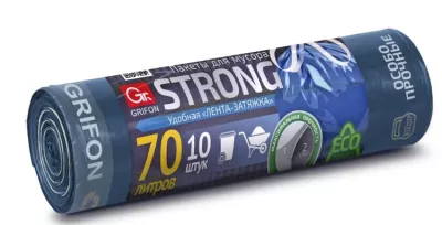 "GRIFON" Мешки для мусора особопрочные "STRONG" с завязками ПВД 70л, 10шт. 20мкм