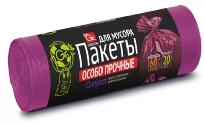 "GRIFON" Мешки для мусора особопрочные "Вишня" ПНД 60л, 20шт. 12мкм
