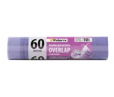 "PATERRA" Мешки для мусора с завязками "OVERLAP" ПНД, 60л, 10шт. 16мкм, цв.фиолетовый