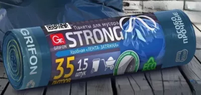 "GRIFON" Мешки для мусора особопрочные "STRONG" с завязками ПВД 35л, 15шт. 20мкм