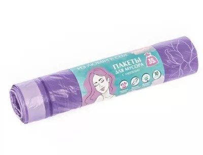 "You'll love" Мешки для мусора с завязками "Пионы" 35л, 10шт. 15мкм, цв.фиолетовый