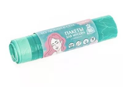 "You'll love" Мешки для мусора с завязками "Пионы" 60л, 10шт. 15мкм, цв.бирюзовый