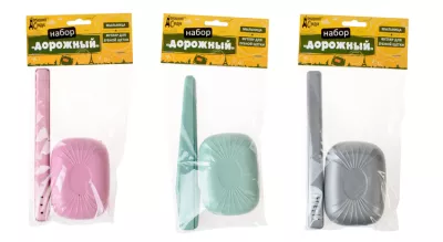 "Домашний Сундук" Набор дорожный: мыльница и футляр для зуб.щетки, 3цв.