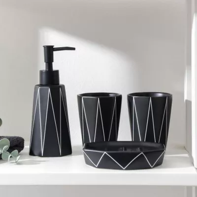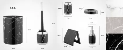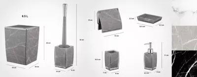 "LIMON" Набор для ванной комнаты "Мрамор" 6пр. квадрат., цв.черный