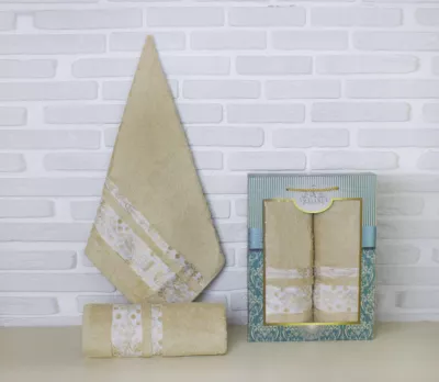 Набор полотенец "Yaprak" 2шт, 50х90см, 70х140см, цв.кремовый, пл.400