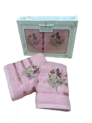 Набор полотенец "Yaprak" 2шт, 50х90см, 70х140см, цв.сухая роза, пл.400