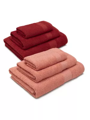 Набор полотенец "Самур" 2шт 30х60см, 2шт 50х80см, 2шт 70х130см, цв.розовый,красный, пл.360