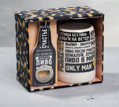 Подарочный набор "Настоящий мужик": Кружка для пива 600мл, открывашка