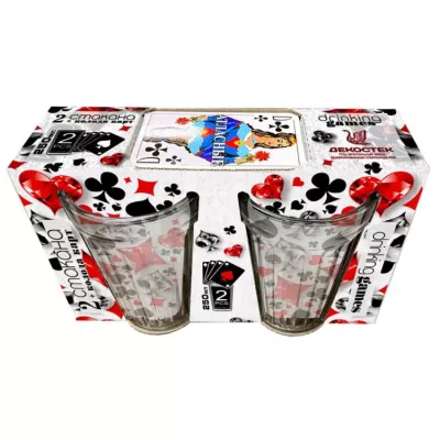 Подарочный набор "Гладкий":стакан 2шт 250мл, колода карт