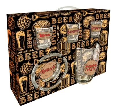 Подарочный набор "Шильдики": кружка для пива 500мл, стопка 3шт 50мл, пепельница