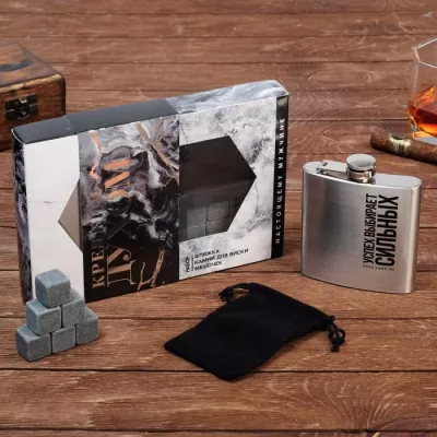 Подарочный набор "Крепкий духом": фляжка, камни для виски