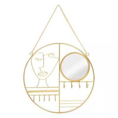 Зеркало подвесное с держателем для украшений 35х35х2,5см, цв.золото