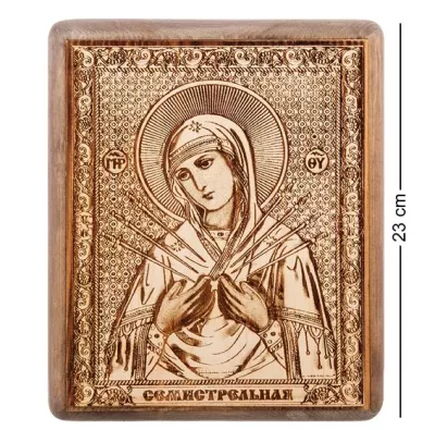 Икона "Божией Матери "Семистрельная" на кедровой доске 23см