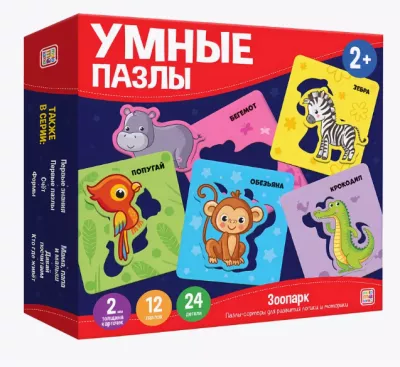 "Умные пазлы" Игра настольная "Зоопарк" 24шт.