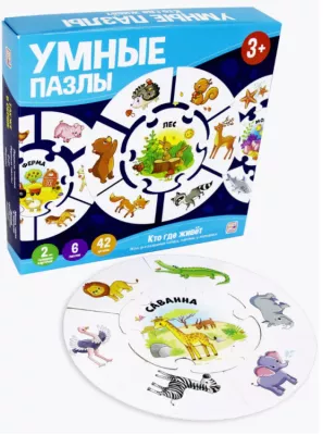 "Умные пазлы" Игра настольная "Кто где живет" 42шт.
