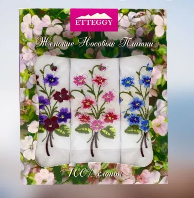 "Etteggy" Набор женских носовых платков 3шт, 28х28см