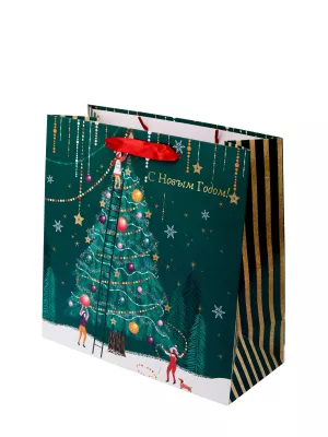 Пакет бумажный "Ёлочка с золотом" 55х45х20см