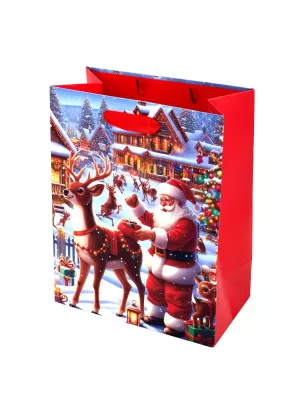 Пакет бумажный "Дед Мороз с оленем" 23х18х10см