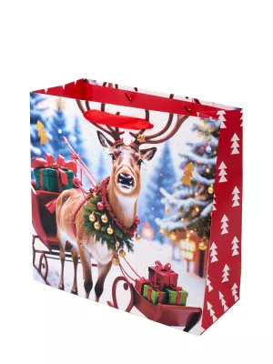 Пакет бумажный "Новогодний олень" 25х25х11см