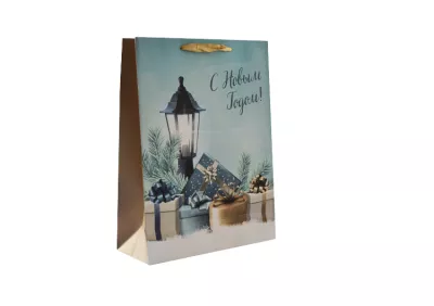 Пакет бумажный "Фонарь с подарками" 32х26х12см