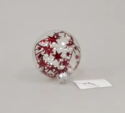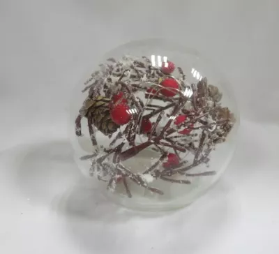 Шар новогодний LED "Прозрачный с красными шариками" 13см
