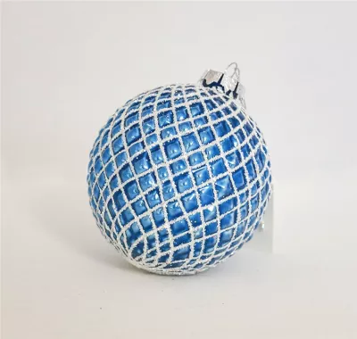 Шар новогодний "Белый с золотыми ромбами" 8см