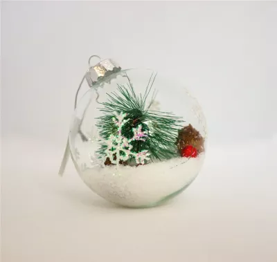 Шар новогодний LED "Прозрачный с зеленой елочкой" 12см