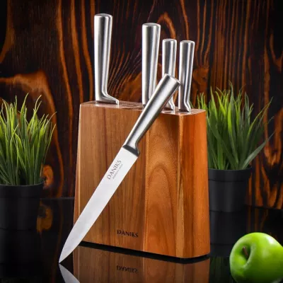 Набор ножей с подставкой "Вуд Грейс" 5пр.