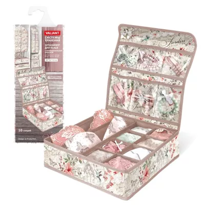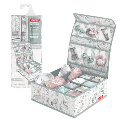 "VALIANT" BOTANIC Органайзер для белья с крышкой на магните, 10 секций 32х32х12см