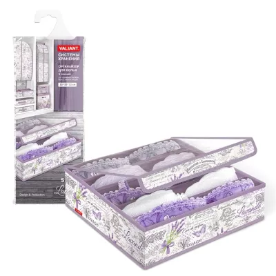 "VALIANT" LAVANDE Органайзер для бюстгалтеров с крышкой на магните, 5 секций 32х32х12см