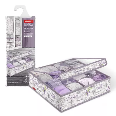 "VALIANT" LAVANDE Органайзер для белья с крышкой на магните, 16секций 32х32х12см