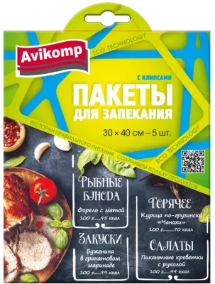 "AVIKOMP" Набор пакетов для запекания "Eco Technology" с клипсами 30х40см, 5шт.