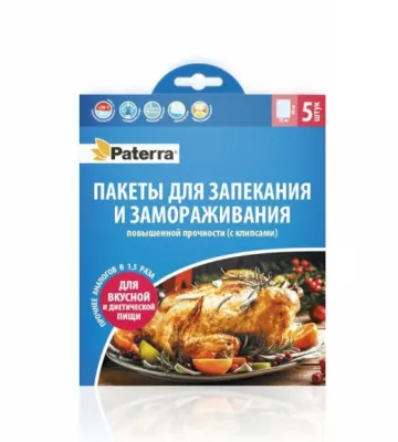 "PATERRA" Пакеты для запекания с клипсами 30х40см 5шт.12мкм