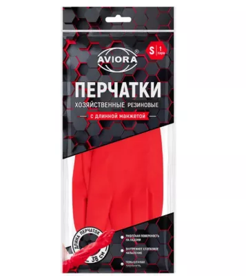 "AVIORA" Перчатки хозяйственные удлиненные размер S, цв.красный