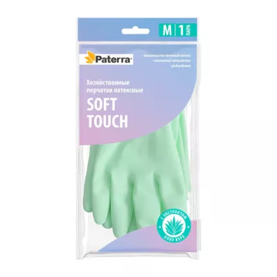 "PATERRA" Перчатки хозяйственные "Soft Touch" с экстрактом алоэ размер M, цв.зеленый