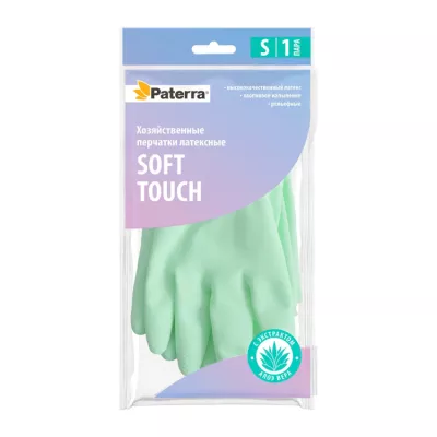 "PATERRA" Перчатки хозяйственные "Soft Touch" с экстрактом алоэ размер S, цв.зеленый