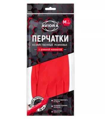 "AVIORA" Перчатки хозяйственные удлиненные размер M, цв.красный
