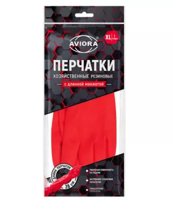 "AVIORA" Перчатки хозяйственные удлиненные размер L, цв.красный