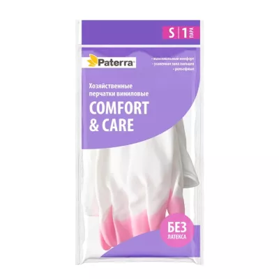 "PATERRA" Перчатки хозяйственные "Comfort&Care" размер S, цв.белый