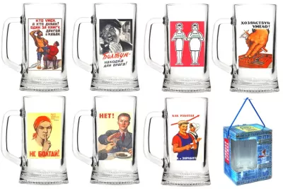Кружка для пива с подставкой "Плакаты СССР" 500мл