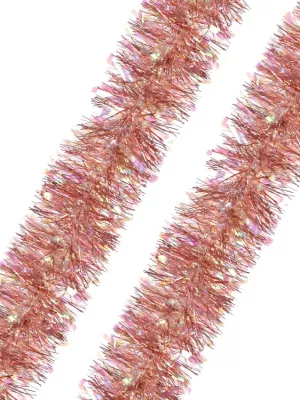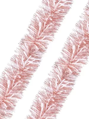 Мишура "Карамельная с белыми вставками" длина 2м, цв.светло-розовый