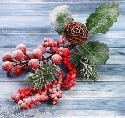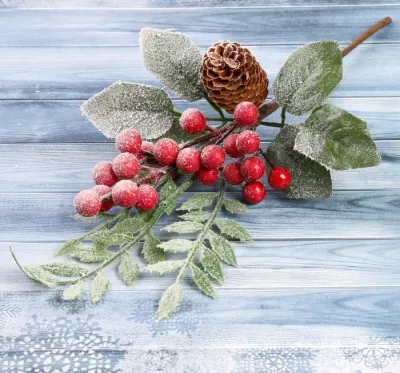 "Зимнее волшебство" Ветка декоративная "Ягоды и шишка" 27см