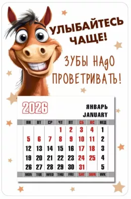 Магнит с отрывным календарем "Улыбайтесь чаще.Конь" 2026