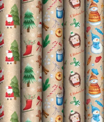 Упаковочная бумага "Christmas time" 100х70см, 5в.