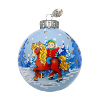 Шар новогодний "Мальчик на лошадке" 8см в п.у.