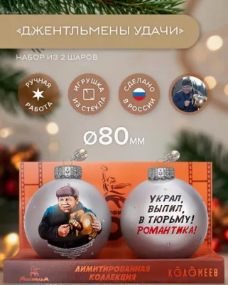 Набор шаров новогодних "Мосфильм.Джентльмены удачи" 8,5см, 2шт в п.у.