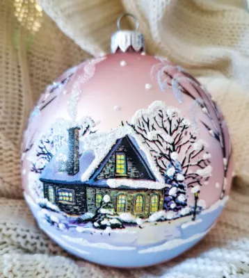 Шар новогодний "Домик на берегу 2" 8см в п.у.