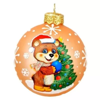 Шар новогодний "Медвежонок у ёлочки" 6,5см в п.у.