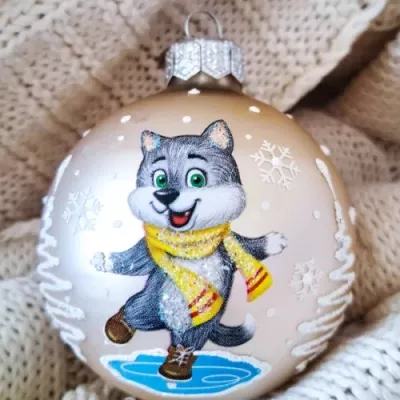 Шар новогодний "Старик с золотой рыбкой" 8см, в п.у.