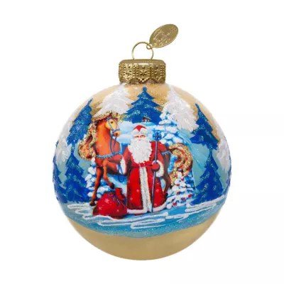 Шар новогодний "Дед Мороз и лошадка" 10см в п.у.